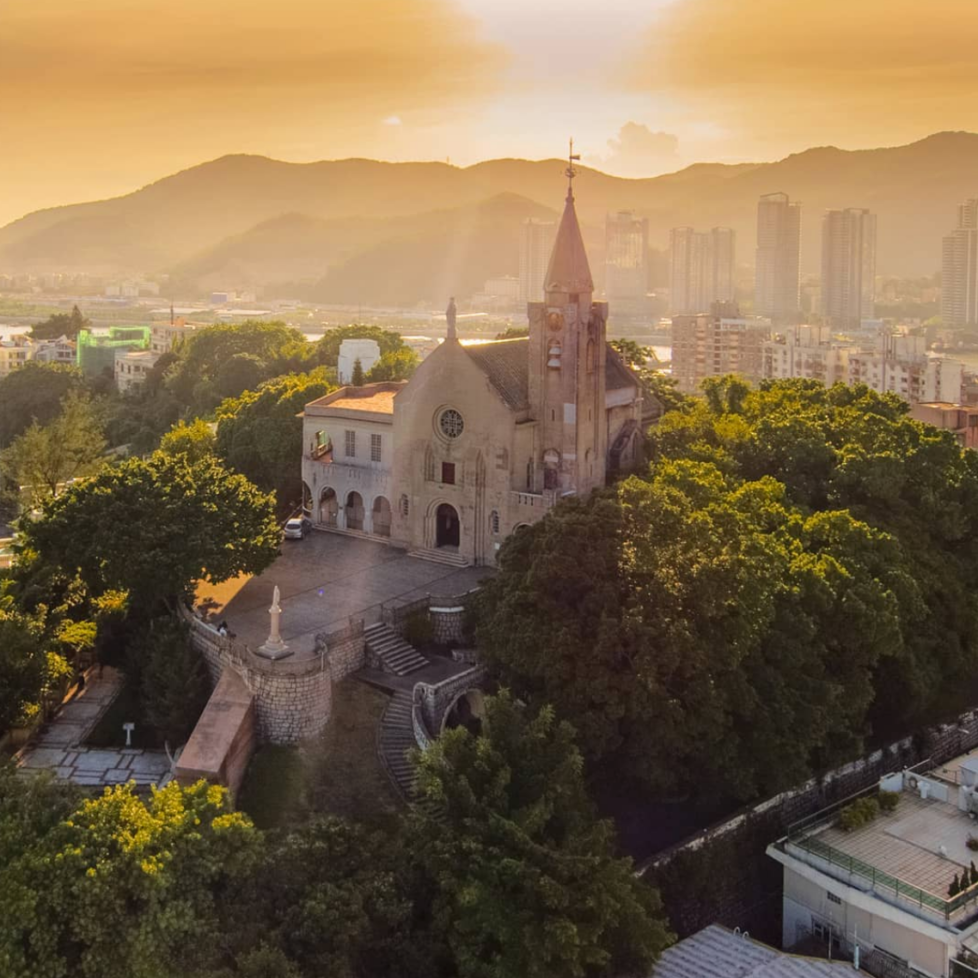 西望洋山,俗称主教山。座落于山顶的西望洋圣堂俗称主教山圣堂,也叫作海崖圣母小堂,建于1622年,为昔日天主教澳门教区的主教府邸,盖有哥德式教堂尖顶,被评定为“具建筑艺术价值之建筑物”并收录于《澳门文物名录》。