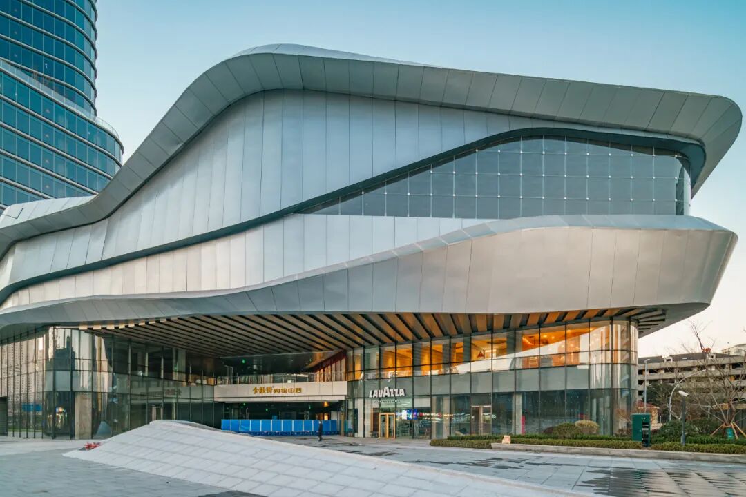 商场凭借“蓝鲸逐浪”的主题设计,还未开业便拿下GBE商业综合体大奖,蜿蜒的立面曲线,远远望去神似蓝鲸与海洋中涌起的巨浪共舞。