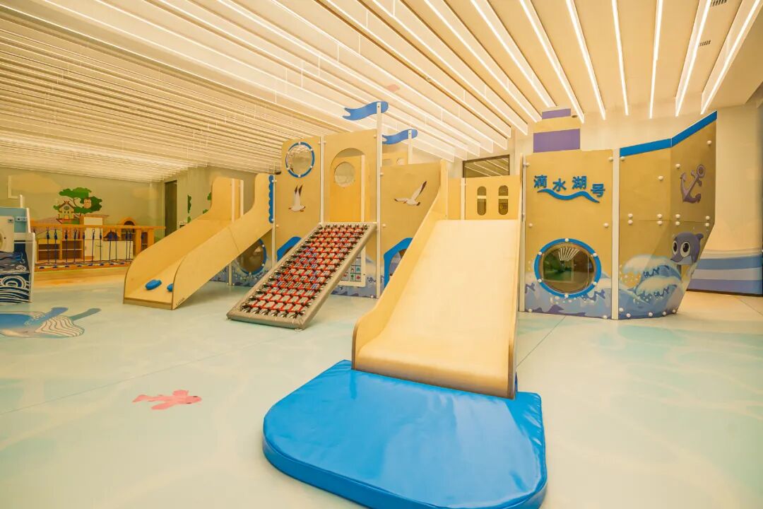 亲子家庭不要错过酒店的儿童乐园——海洋创想儿童俱乐部。儿童俱乐部被划分为互动游乐、探索活动、手作阅读、模拟生活、智能游戏五大区域,拥有“滴水湖号豪华邮轮”等游乐设备,让小朋友们激发无穷创想。