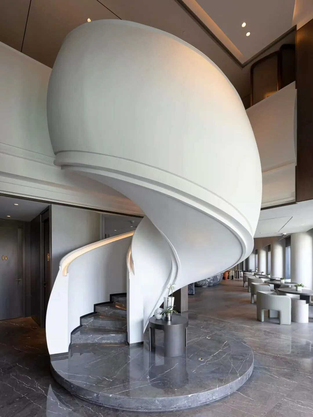 室内设计由HBA大刀阔斧改建,以当代美学为视角,汲取海陆的交汇带来的意象灵感,拥有水之折影、波纹、贝壳的精华元素。
