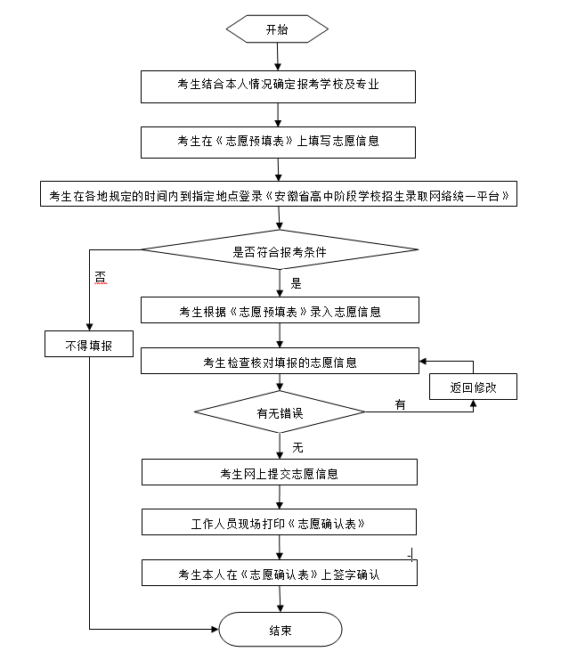 报考五年制高职学校考生使用指南和五年制高职考生志愿填报说明已公布在省中招统一平台上,请考生认真查看。五年制高职志愿填报及确认操作流程见下图: