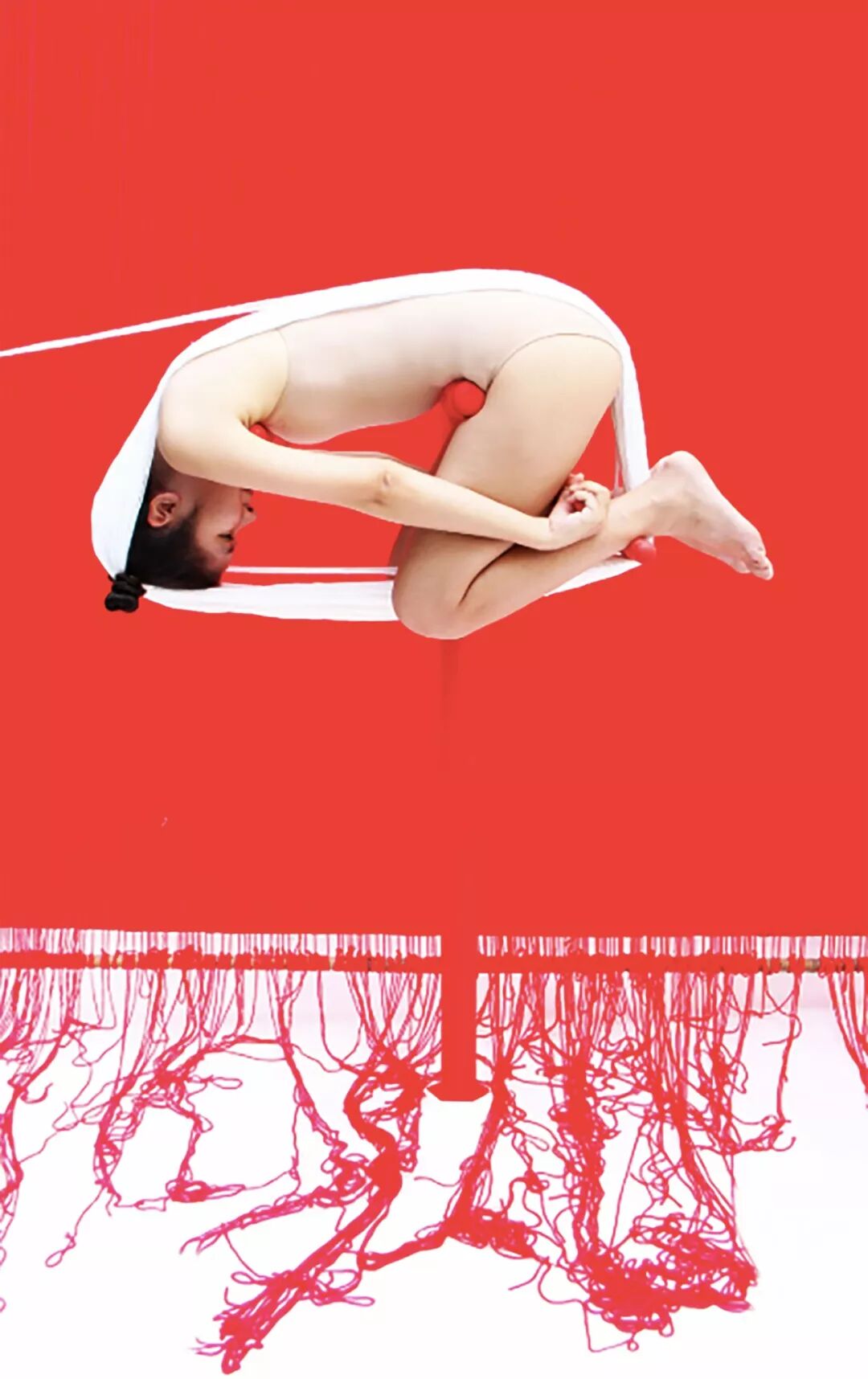 在《吊钩》里,我扮演一名受害者。我把自己捆绑起来,掉在鱼钩上,你可以说我是一条待宰的鱼,也可以是一名疲惫不堪的工人。