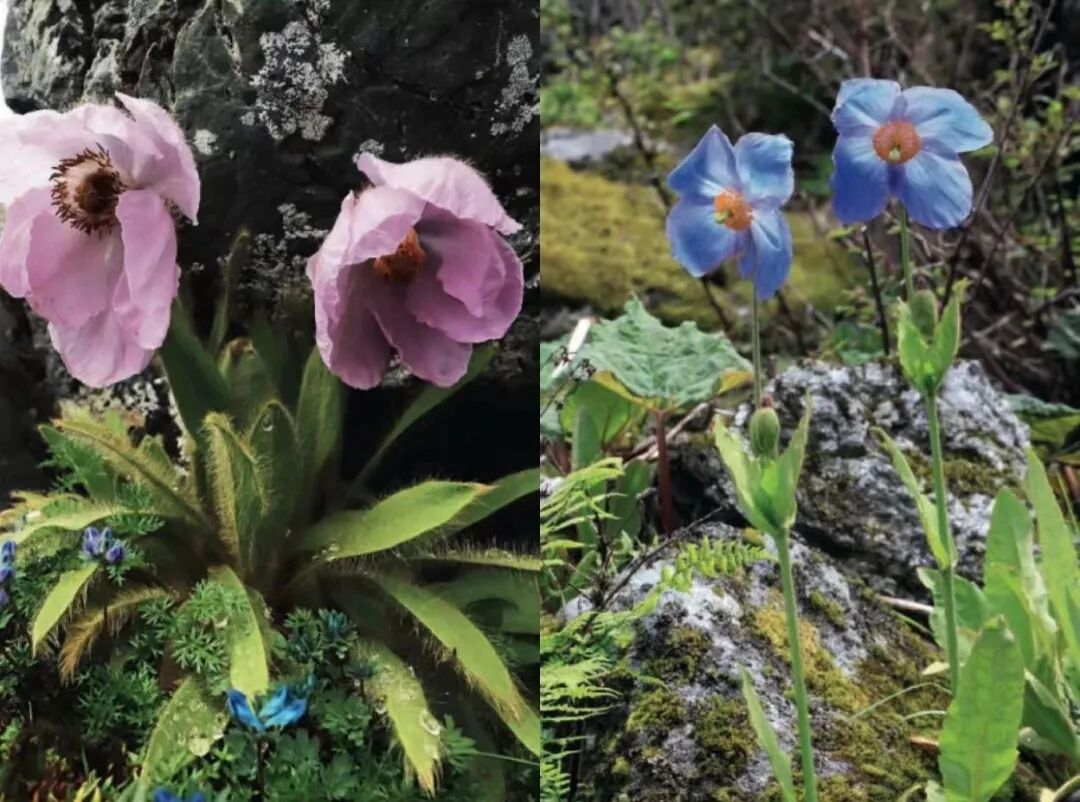 谢氏绿绒蒿(左)、幸福绿绒蒿(右)中国影像新纪录