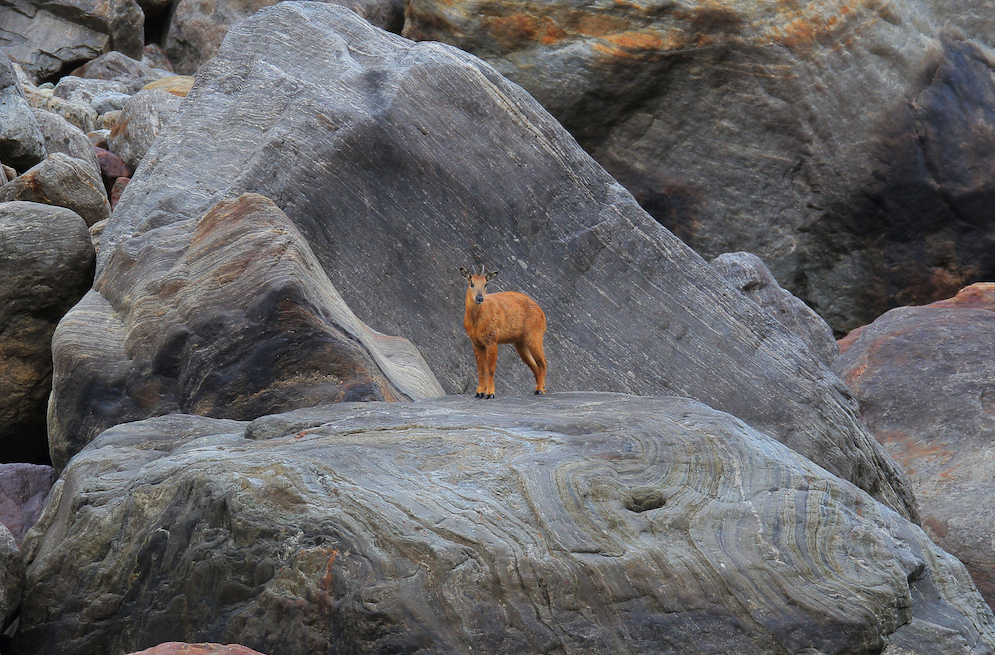 这些年,我们的调查成果,先从喜马拉雅山脉的东部说起,那儿主要是原始森林和亚热带雨林,我们拍到红斑羚、豹猫、墨脱缺翅虫、叶䗛、烙铁头蛇等等。