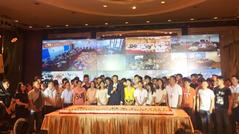 集团总裁郭台铭当日现身深圳周年庆现场,与员工一起为富士康庆生。