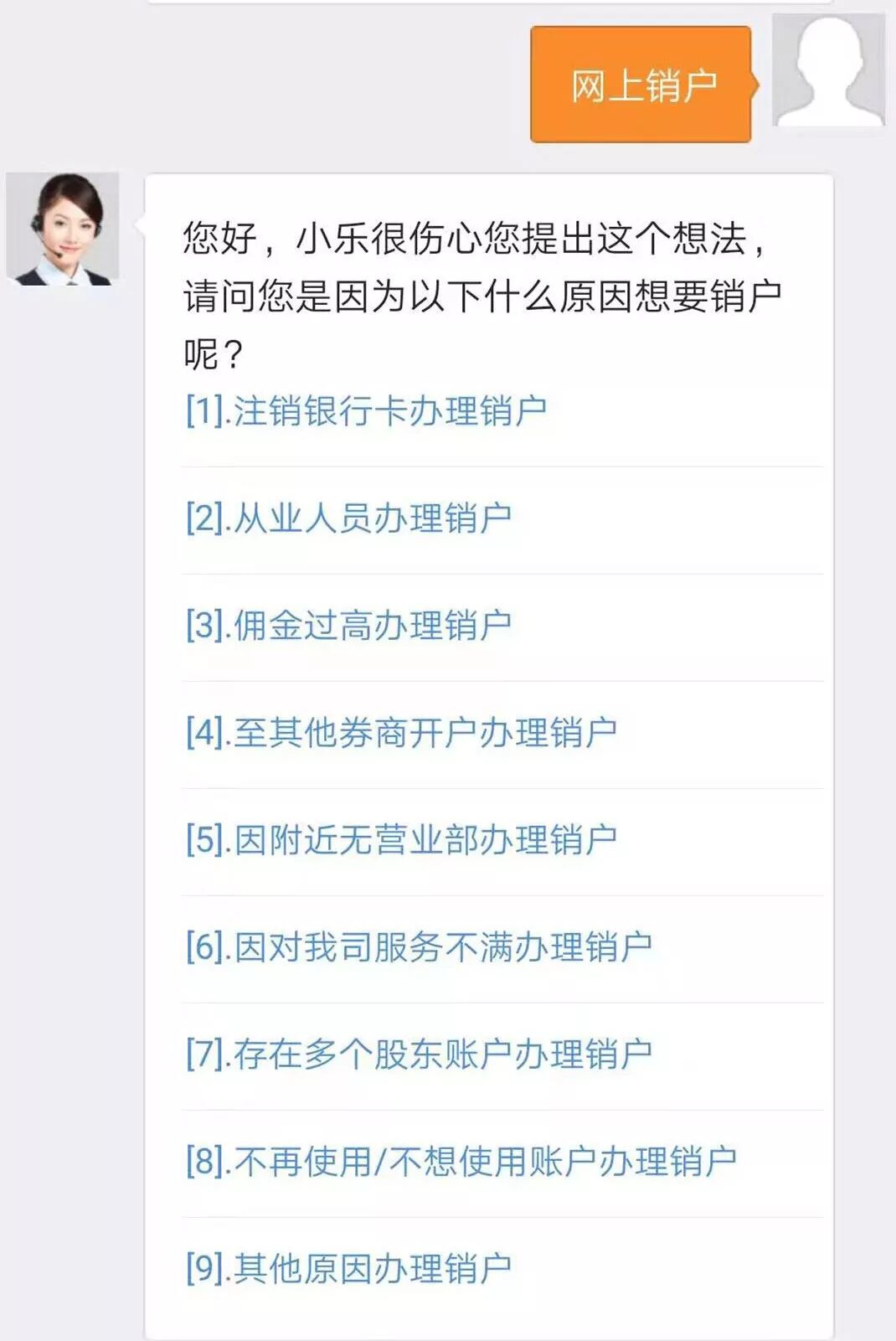 小编咨询人工客服后获知,客户需先提供客户号、姓名、手机号等基本信息,经由服务经理查询后,才能获知是否符合线上销户的条件。有投资者表示,“本以为线上销户可以避免与客户经理面对面交涉的尴尬,但现在看,还是绕不开与客户经理沟通这一环节。”