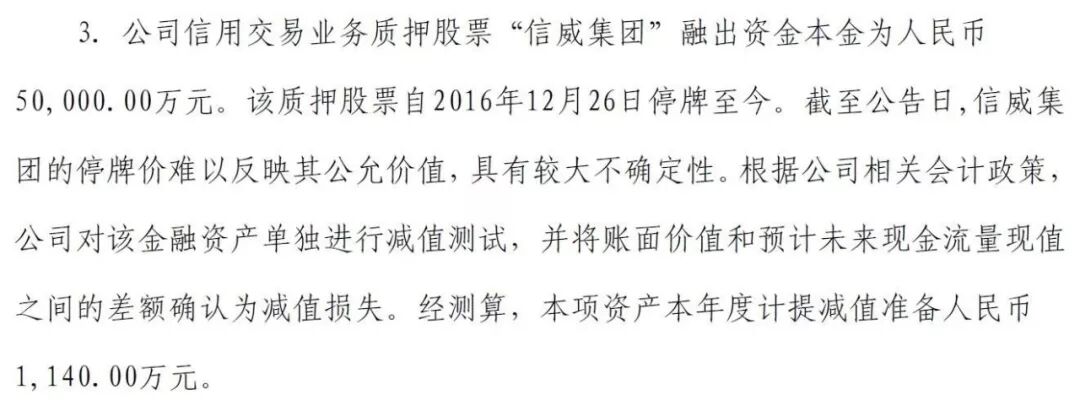 *ST信威复牌前夕,西部证券在7月9日发了这么一份公告,宣布计提相关股票质押减值准备6259.20万元。此前,西部证券已就*ST信威的股票质押计提过1140万元。