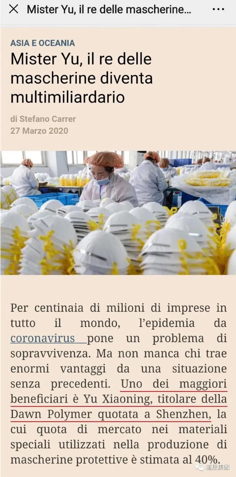 意大利《24小时太阳报》关注道恩股份