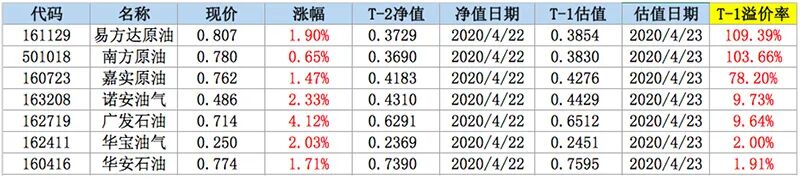 集思录数据显示,截至4月23日,易方达原油基金、南方原油基金溢价率已超过100%。