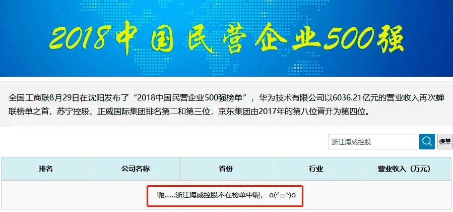 不过,对于这家“中国民营企业500强”企业,记者并未找到其官方网站。而且,通过查阅近两年的“中国民营企业500强”名单,也没有这家公司的身影。