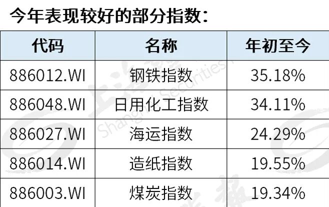毫无疑问,顺周期板块成为今年A股最靓的仔。截至5月7日,今年以来上证综指整体下跌1.56%,同期钢铁指数、日用化工指数却上涨了35.18%、34.11%。