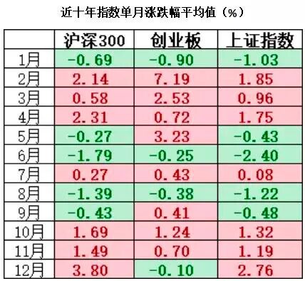 好买基金最近统计了沪深300指数、创业板指和上证指数近十年(2011年1月至2020年12月)的单月涨跌幅,并计算了这十年间涨跌幅的平均值。