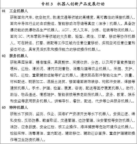 将实施机器人创新产品发展行动
