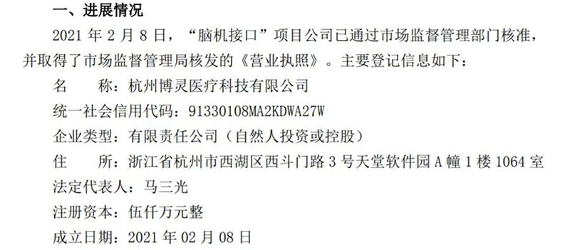 蹊跷的是,就在浙商创投阵营开始减持时,创新医疗股价出现一波强力反弹,贴上的概念标签是“脑机接口”。据公告,2021年2月,创新医疗发布公告,公司与许科帝合作出资设立“脑机接口”项目公司(博灵医疗)已完成工商注册登记。该公司由创新医疗出资2000万元,持股比例40%。