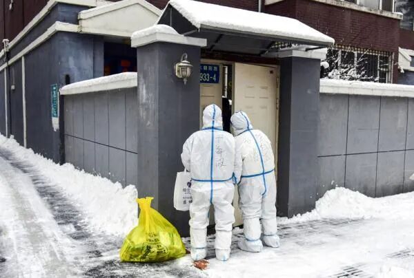 长春市工作人员挨家挨户送抗原自测试剂盒