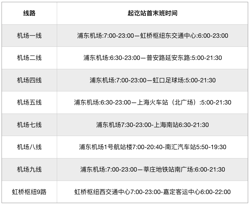 •连接虹桥、浦东两大机场的始发线路8条,班次间隔原则上不大于90分钟。根据虹桥机场的疫情防控要求,目前区域实行管控措施,虹桥枢纽4路、虹桥枢纽9路和941路,终点站由东交通中心调整至西交通中心。