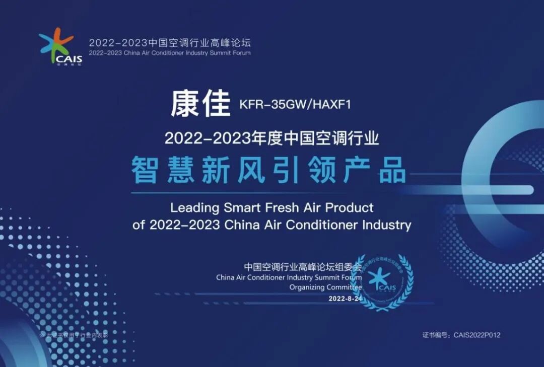 此外,康佳智慧新风空调也收获了市场与行业的双重认可,在近期举办的“2022-2023中国空调行业高峰论坛”上荣获“智慧新风引领产品”奖。