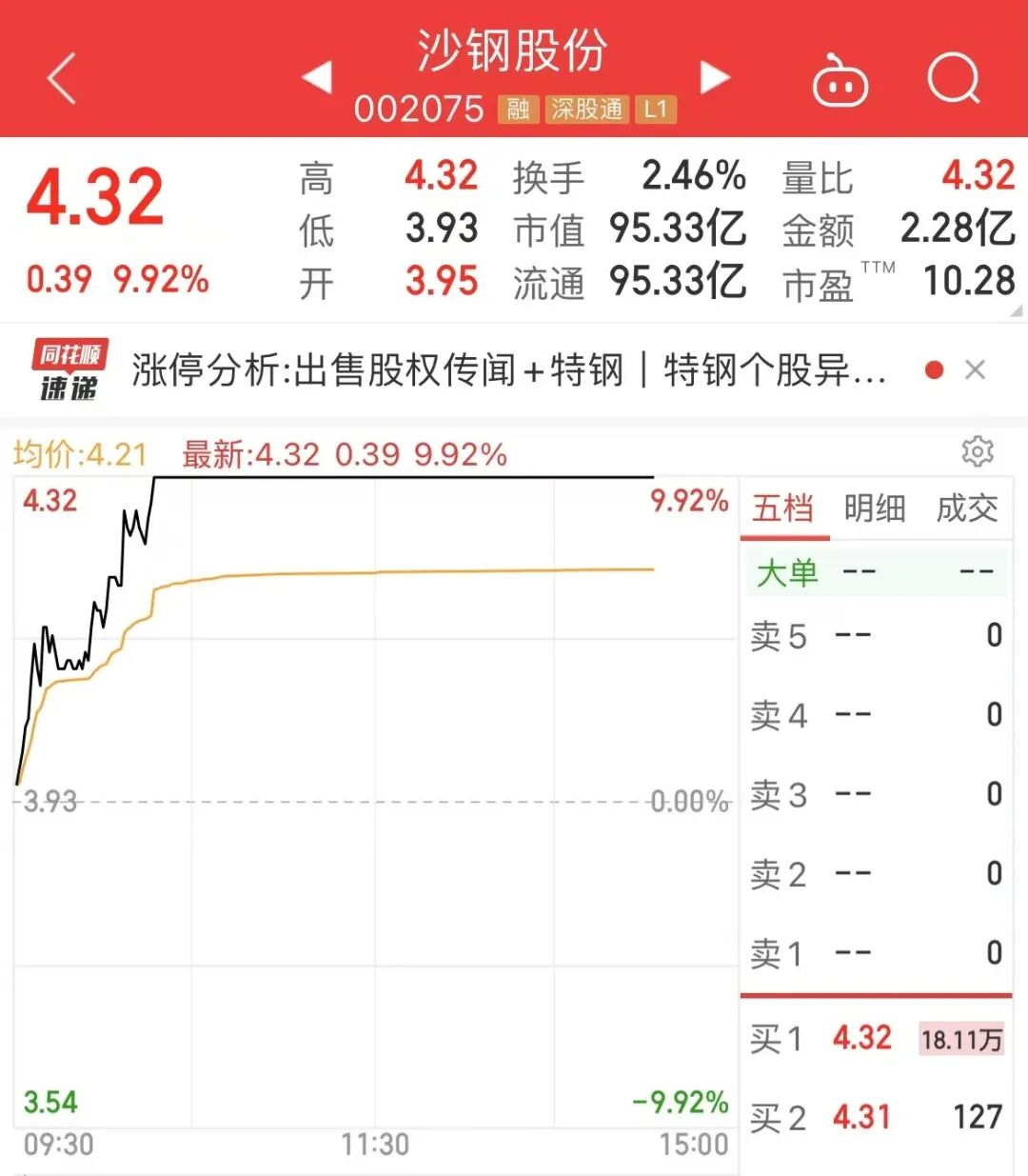 而沙钢集团旗下上市平台沙钢股份并未停牌。今日开盘后不久,沙钢股份便封涨停板。沙钢集团也公开回复称,相关信息以上市公司公告为准。