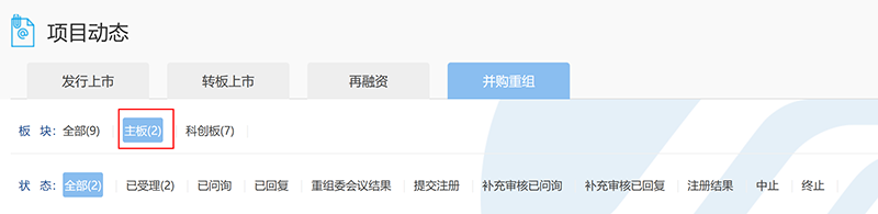 已受理并购重组平移项目2单。