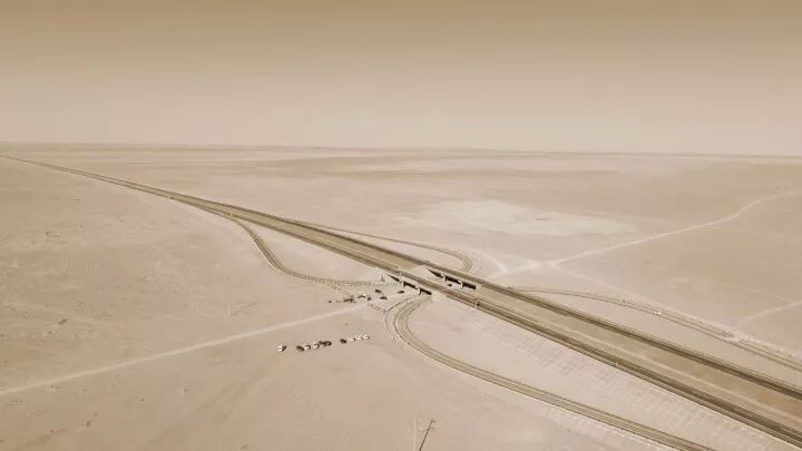 从无人机航拍的照片可以看出,京新高速犹如一条巨龙,在沙漠戈壁滩里穿行。一些外媒也注意到了这条“超级公路”。