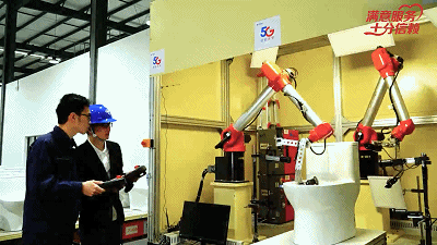 ▲中国电信联手九牧打造的5G智慧园区中,5G+施釉机器人替代人工,自动为产品喷涂施釉,大幅提升生产效率。