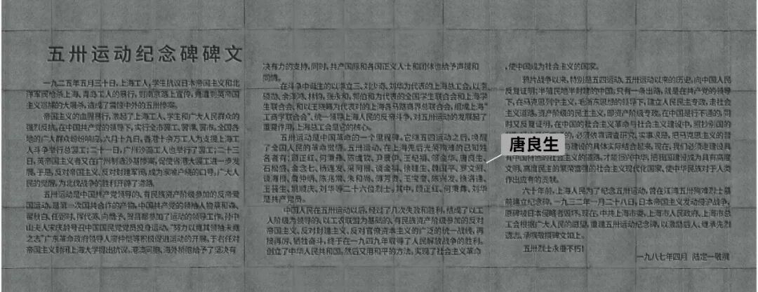 ▲五卅运动纪念碑碑文