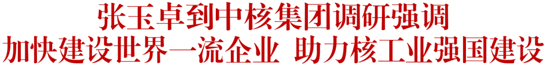 张玉卓强调,核工业在保障国家安全、推进能源革命等方面具有巨大发展空间。要坚决贯彻落实党中央、国务院决策部署,加快推进高质量发展,续写我国核工业发展新篇章。要强化科技创新,充分发挥新型举国体制优势,聚焦科技自立自强,突出加强核工业战略性、基础性、前沿性、颠覆性技术研究,建设高水平原创技术策源地。要以培养高水平科技领军人才为重点深化人才强企战略,努力造就更多大师、战略科学家、一流科技领军人才和创新团队,鼓励引导大家传承老一辈核工业人以身许国的家国情怀,坚定创新自信、勇攀科技高峰。要对标一流深化改革,构建卓越高效的企业治理结构和管理运行机制,切实把中国特色现代企业制度的制度优势转化为竞争优势。要统筹发展和安全,牢记安全是核工业生命线,安全有序发展核能,扩大有效投资,更好保障能源安全、助力实现“双碳”目标。要坚持党的领导加强党的建设,赓续红色血脉,持续完善党建融入重大工程创新管理模式,以高质量党建引领保障高质量发展。