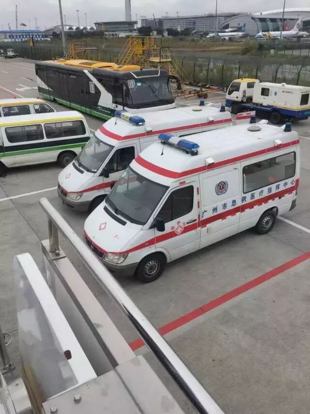 航班安全备降广州白云国际机场。地面救护车和医护人员已经全部准备就绪