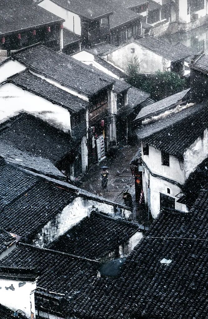 银装素裹的周庄。这里能保留大量古建筑,其实是因为80年代初经济发展慢,没有像其他镇一样进行现代化建设