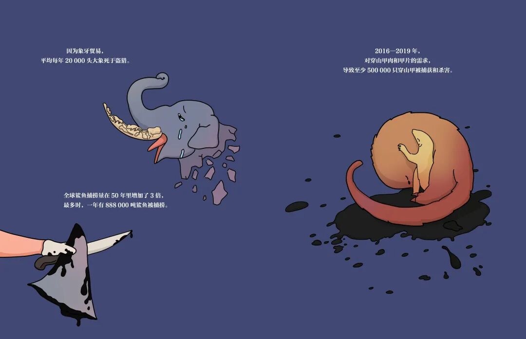 其中最重要的是,这两册绘本在出版过程中得到了环保机构野生救援(WildAid)的支持和帮助。