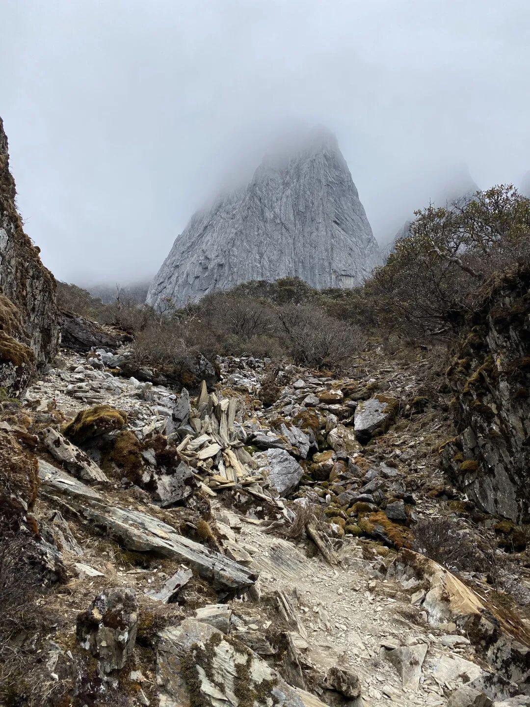 但爬升时不断变换的景色带来了惊喜和鼓舞。山腰处能看到大片盛开的高山杜鹃,这是我国特有的品种。白的、粉的、还有鲜红的,似云似霞,让清冷的山头多了一份热烈。