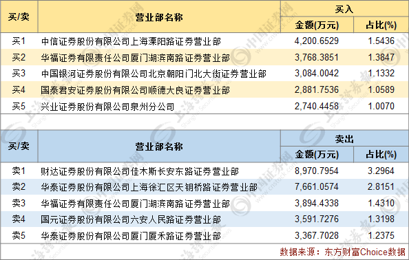 3月20日,乐视网股价低开高走收获涨停。盘后龙虎榜显示,著名游资中信证券上海溧阳路营业部高居买一,买入金额4200.65万元。华福证券厦门湖滨南路营业部使出了“T+0”交易手法,买入3768.39万元的同时,卖出3894.43万元。前一日买入2988.64万元的华泰证券厦门厦禾路营业部位居卖五位置,卖出金额3367.70万元,结合上榜金额及股价表现来看,大概率实现获利离场。