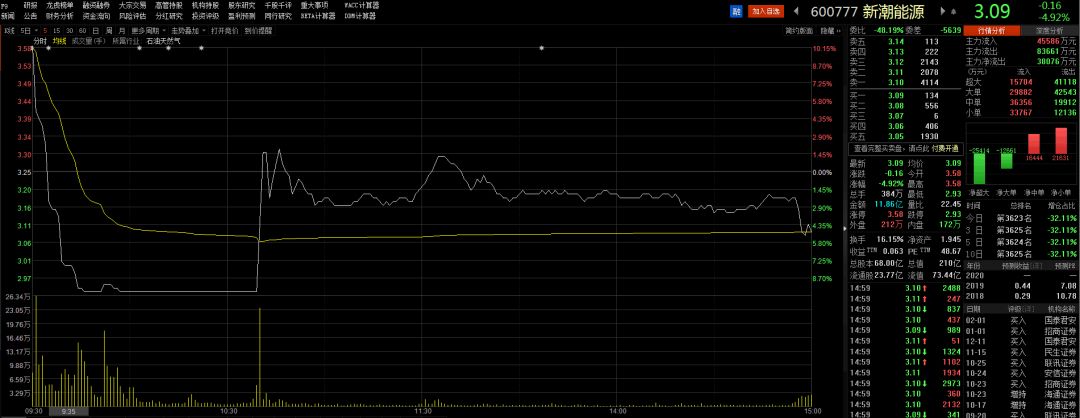 复牌涨停开盘,买入就能数板?新潮能源今日走势告诉各位小散:凡事无绝对,涨停开盘后砸向你的或许就是跌停!