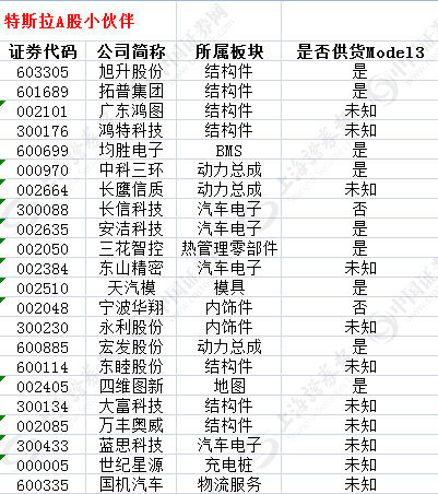 据记者初步统计,目前特斯拉A股小伙伴已达到22家,20家A股公司与特斯拉有直接的供货关系。其中10家公司明确透露,为特斯拉Model 3 供货。