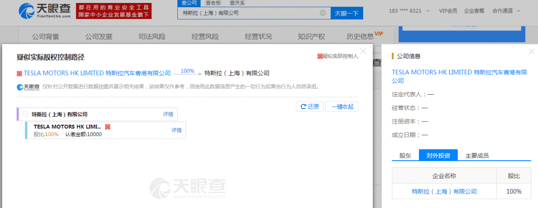 据天眼查信息显示,特斯拉(上海)有限公司注册资本为1亿元,由TESLA MOTORS HK LIMITED (特斯拉汽车香港有限公司)100%控股。