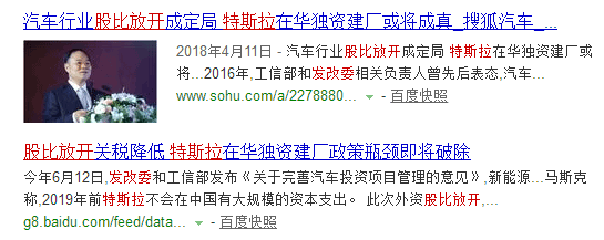 一位消息人士曾向记者透露:特斯拉在上海已开始动工建厂,先开工,然后等外资在华设立汽车公司的股权比例放开再调整,否则来不及,因为钢结构要一年半时间,像特斯拉2014年6月开建的Gigafactory现在都没彻底建好。