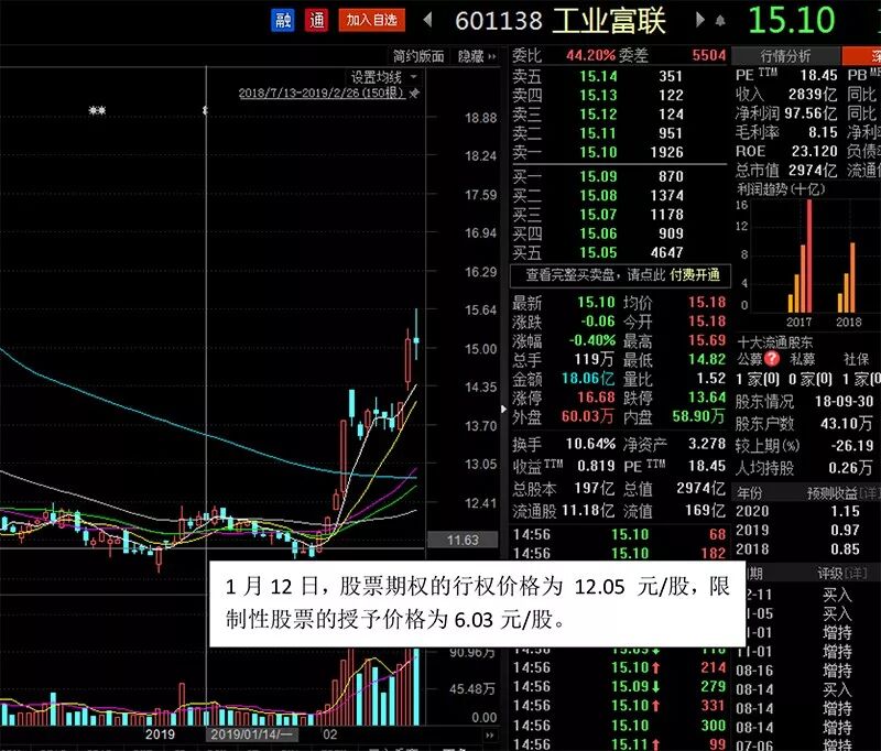据查询,今年1月12日,公司推出了股票期权和限制性股票激励计划,拟授予 3375万份股票期权与 1.9125 亿股限制性股票,股票期权的行权价格为 12.05 元/股,限制性股票的授予价格为6.03元/股。工业富联最新股价15.10元。
