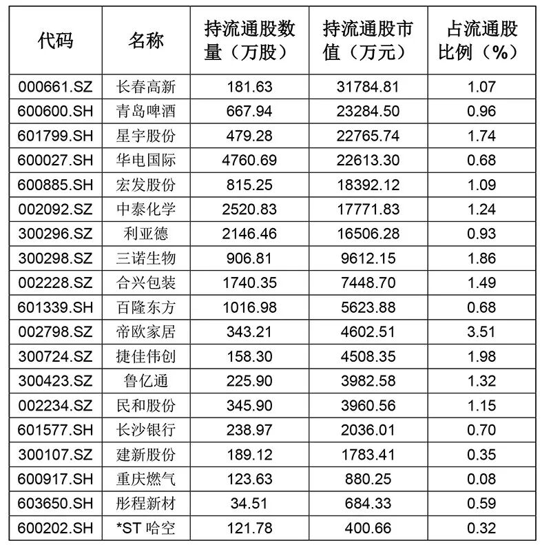 以领航投资澳洲有限公司为例,该机构本期持有22只个股,持股数量高居榜首。其中不乏连云港、山东路桥等“一带一路”概念股,此外中信建投、彤程新材、新乡化纤、北京利尔等多只成长个股也在其持股名单中。