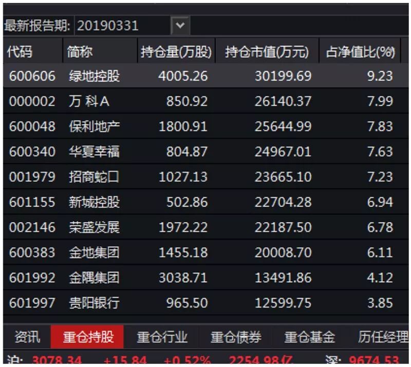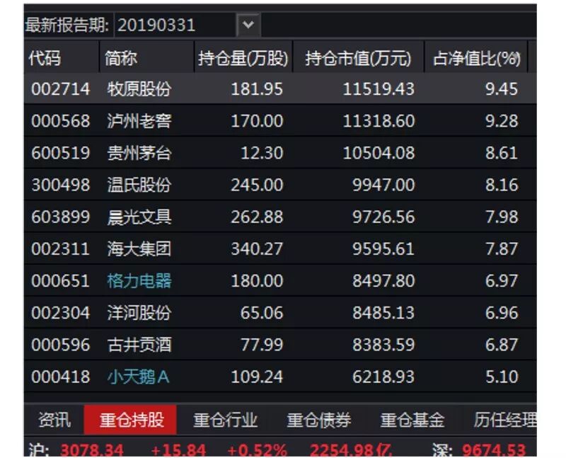 明星产品仓位不低