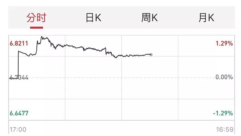 同日,离岸人民币对美元于亚市早盘急跌近900点,最低触及6.8211,跌幅为2016年1月以来最大。