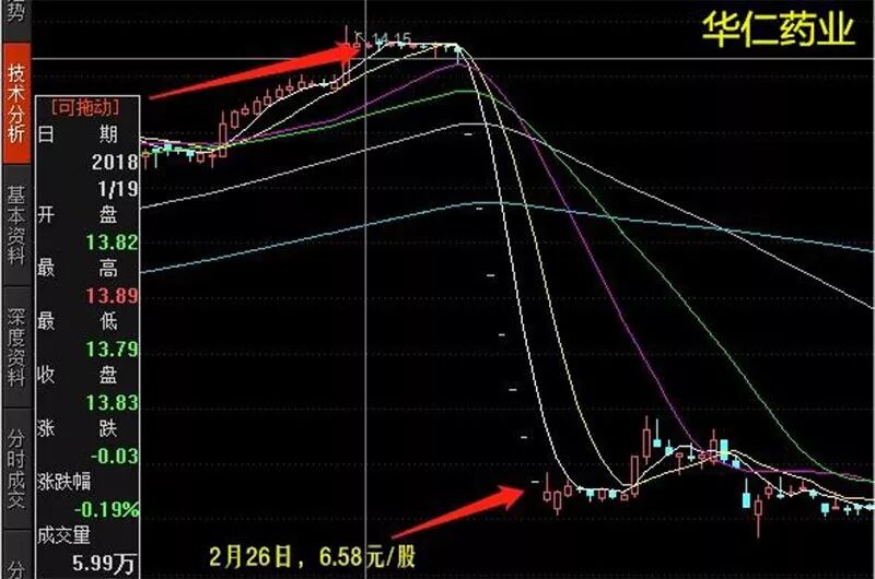 2018年1月19日,华仁药业收盘价为13.83元/股,随后不久便出现断崖式下跌,于2月9日至2月26日期间连吃7个跌停,股价跌至6.58元/股。