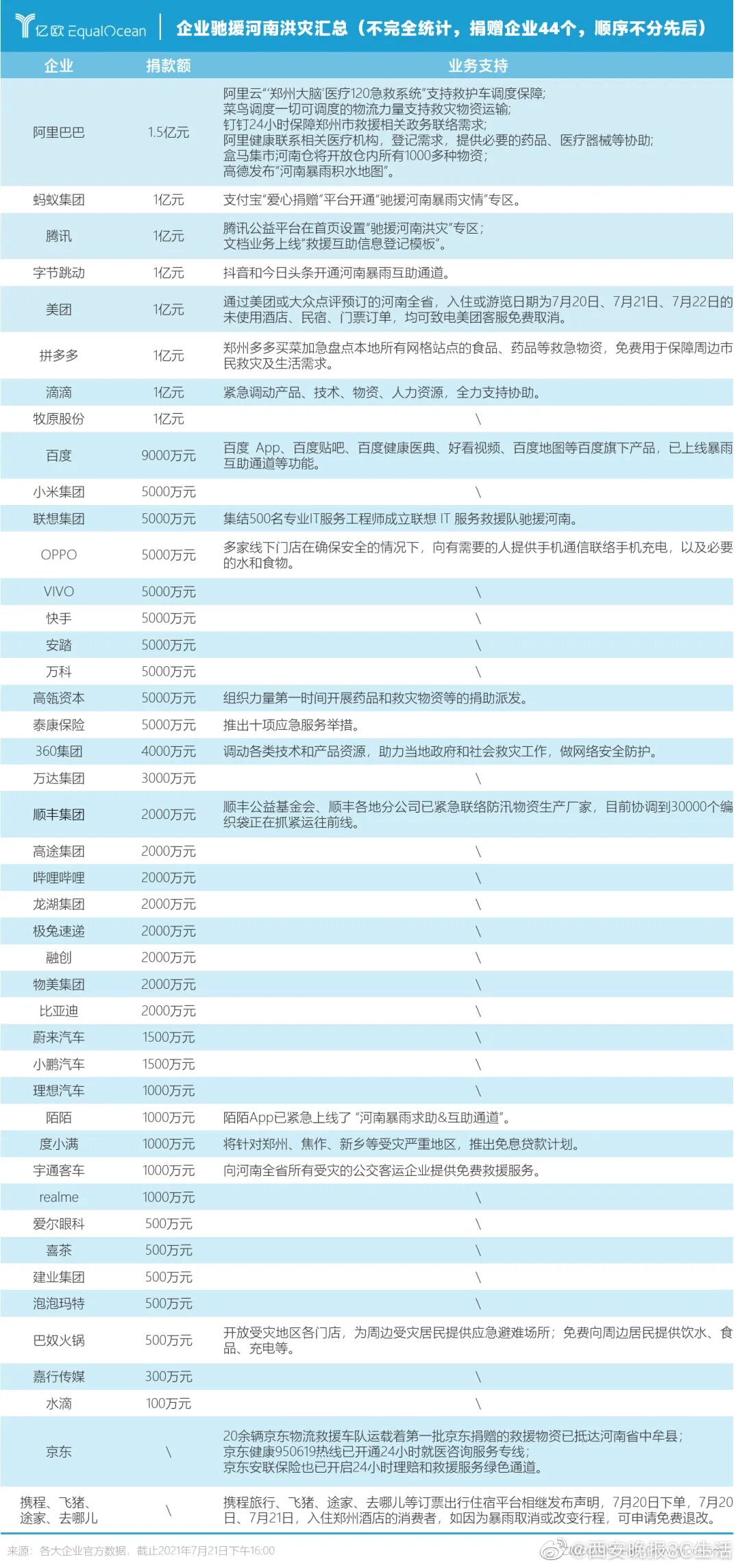 (数据来源亿欧,截止7月21日16点)