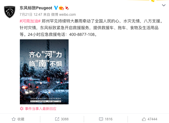 次日,东风标致又官方致歉,承认救援工作存在不足。