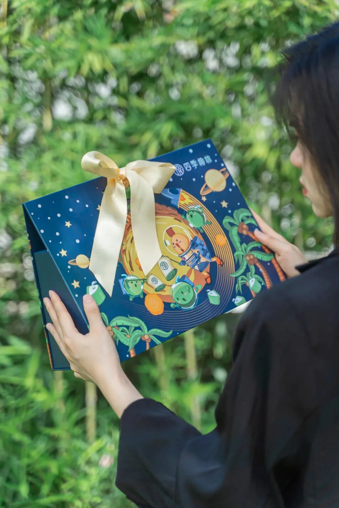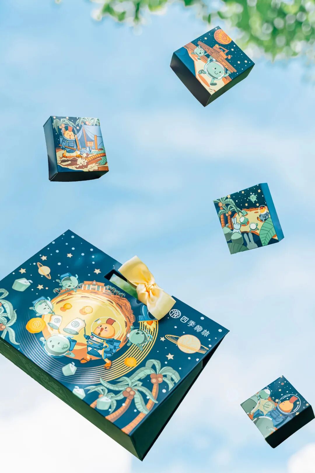 土巴兔中秋礼盒,在视觉上融入了月球、宇航员、火箭等元素,希望大家前行、奋斗的路上,家庭、事业皆“圆”满,寓意挺不错。