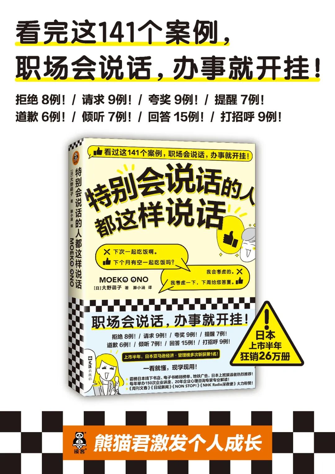 那你一定缺少这样一本职场说话万用公式——《特别会说话的人都这样说话》书中包含141个职场中的真实沟通案例,手把手叫你如何开口说话,让你一看就懂,现学现用