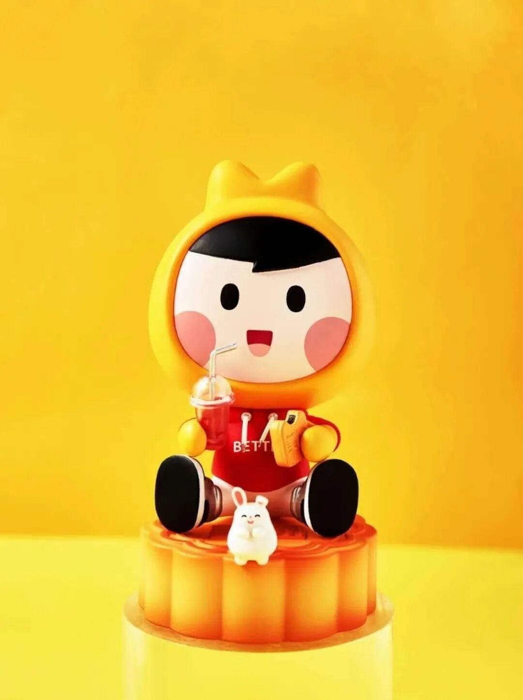 美团今年的月饼礼盒是6个月饼、一个镭射手提袋、一个收纳盒、一个美团公仔。我能申请只要公仔不要月饼吗,也太可爱了吧!!!