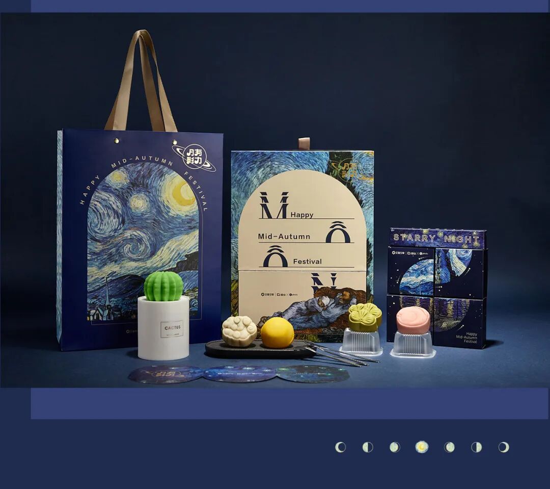 抖音文创结合非遗皮影设计制作了中秋礼盒【举杯邀明月,抖来新生意】,包含1个创意礼盒、1个旋转夜灯和4块月饼。这款将喜神和武财神相结合的中秋礼盒可以说是很用心了。今年图虫创意&IC photo以名画艺术IP为灵感,推出了以“月有影力”为主题的中秋礼盒,把月饼装进了一个袖珍版的“梵高博物馆”,传递出一种复古艺术的浪漫。