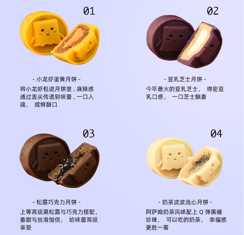 B站今年的主题是”逐月计划“,小电视化身宇航员,前往月球。4个小电视表情的定制月饼,其中就有藤椒牛肉味和湖泊龙井味,不知会是一种什么样的体验。