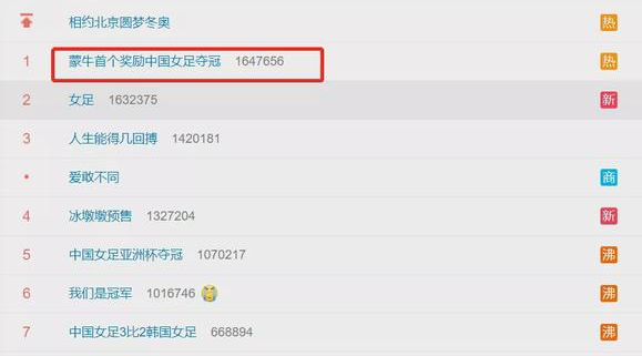 就像冬奥和安踏一样,人家是官方的,不火都难。我们看到,小红书和人人车就是享受了女足官方赞助商的红利,但去中心化传播时代,品牌必须生成或者参与社会化内容的生成,才能跟着刷屏,即“10倍营销费”理论,从这点来看,蒙牛做得最好,也上了热搜。