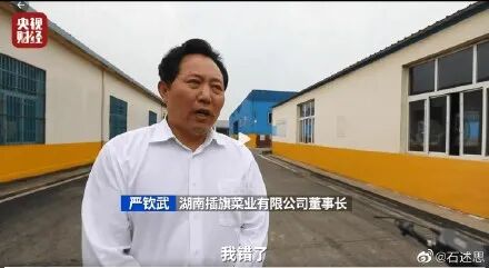 另一家企业插旗菜业的董事长接受央视采访,公开道歉,承认错误。